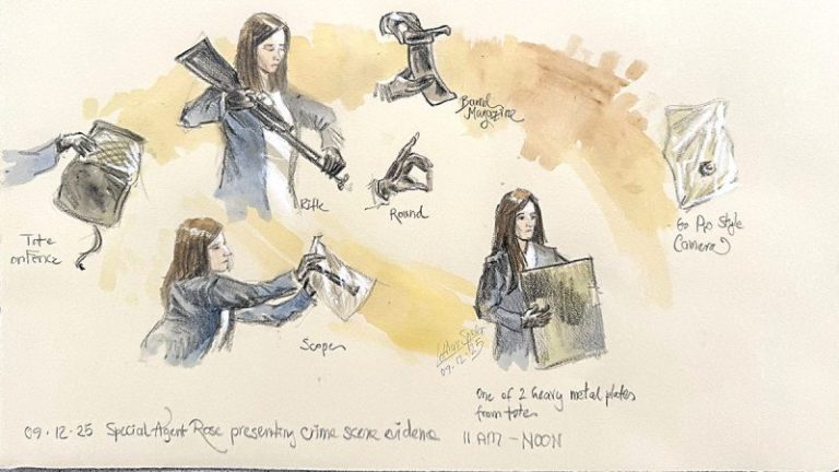 The week’s witnesses included a Secret Service agent who testified Routh smiled at him while pointing a rifle ‘directly at my face,’ a civilian who identified Routh fleeing in a black Nissan Xterra, and bomb squad and FBI agents who described the alleged sniper’s hideout — backpacks clipped to a fence, a camera zip-tied to it, and Vienna sausages on the ground.